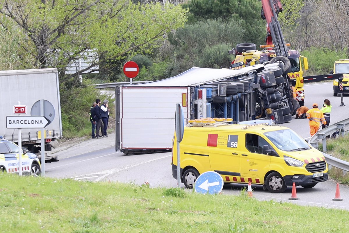 Un camió bolcat totalment talla l’accés a la C-17 des de Lliçà d’Amunt