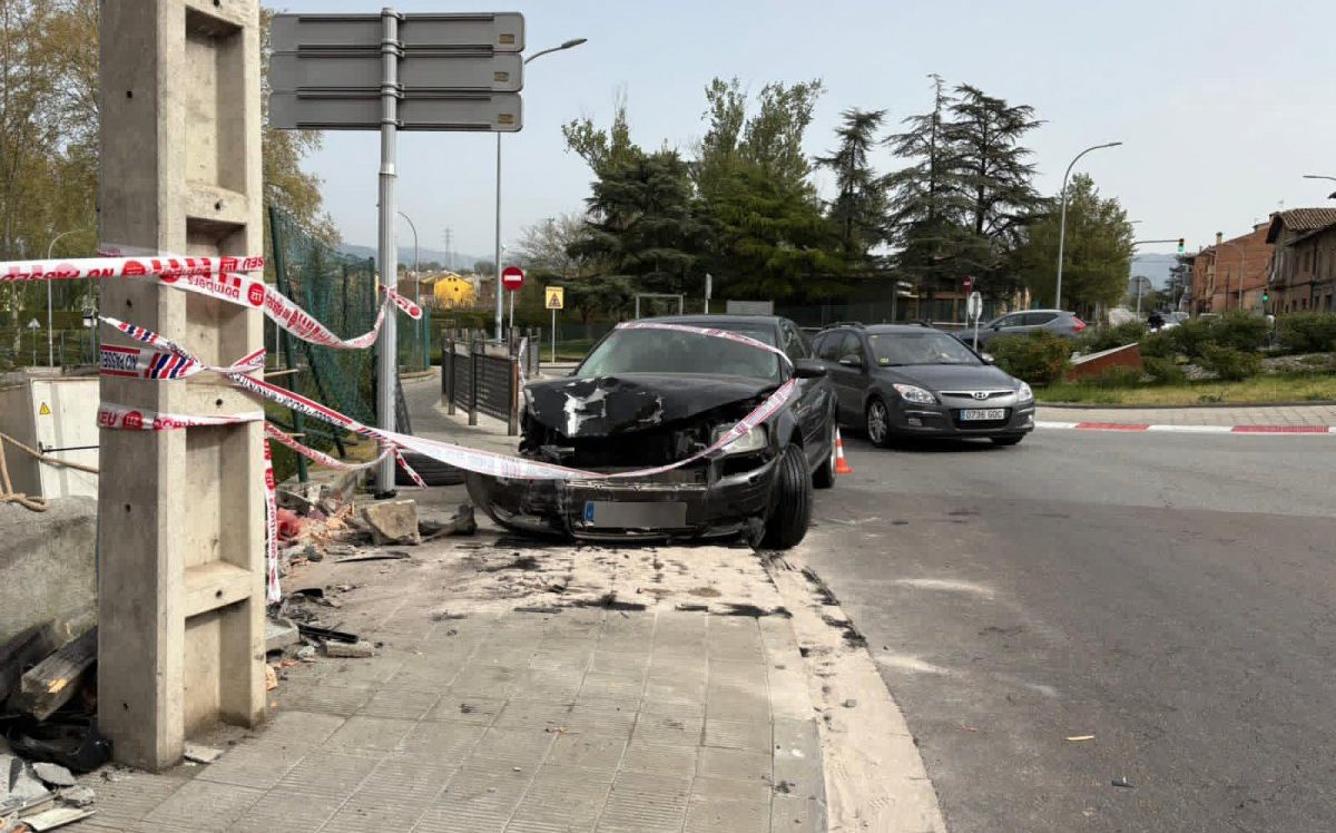 Un cotxe s’encasta a un mur a la rotonda de Roda