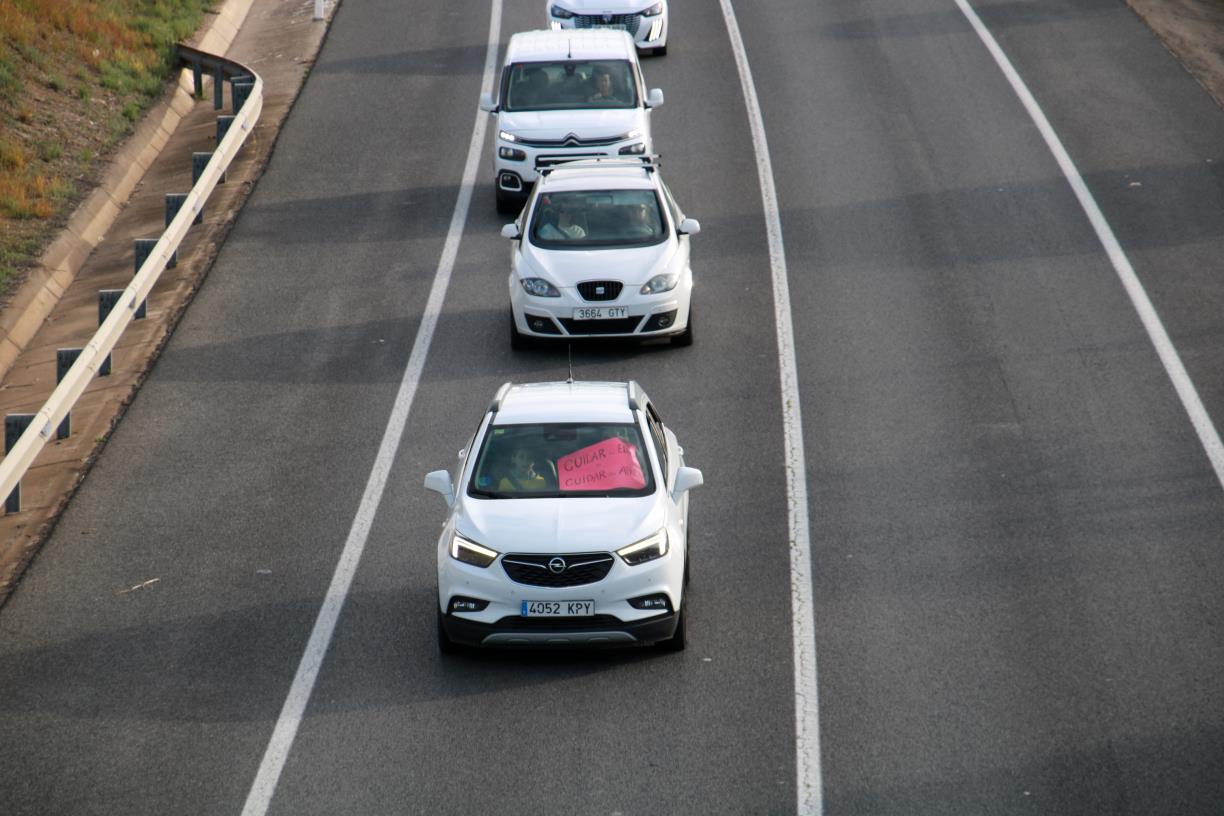 Desenes de vehicles participen en la marxa lenta del professorat entre l’Aldea i Tortosa